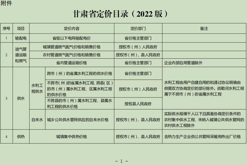 《甘肃省定价目录(2022版)》已经十三届省政府第162次常务会议审议通过,并报国家发展和改革委员会审定批复,自2022年9月1日起施行,现予以公告。原甘肃省发展和改革委员会2018年第1号公告同时废止。
