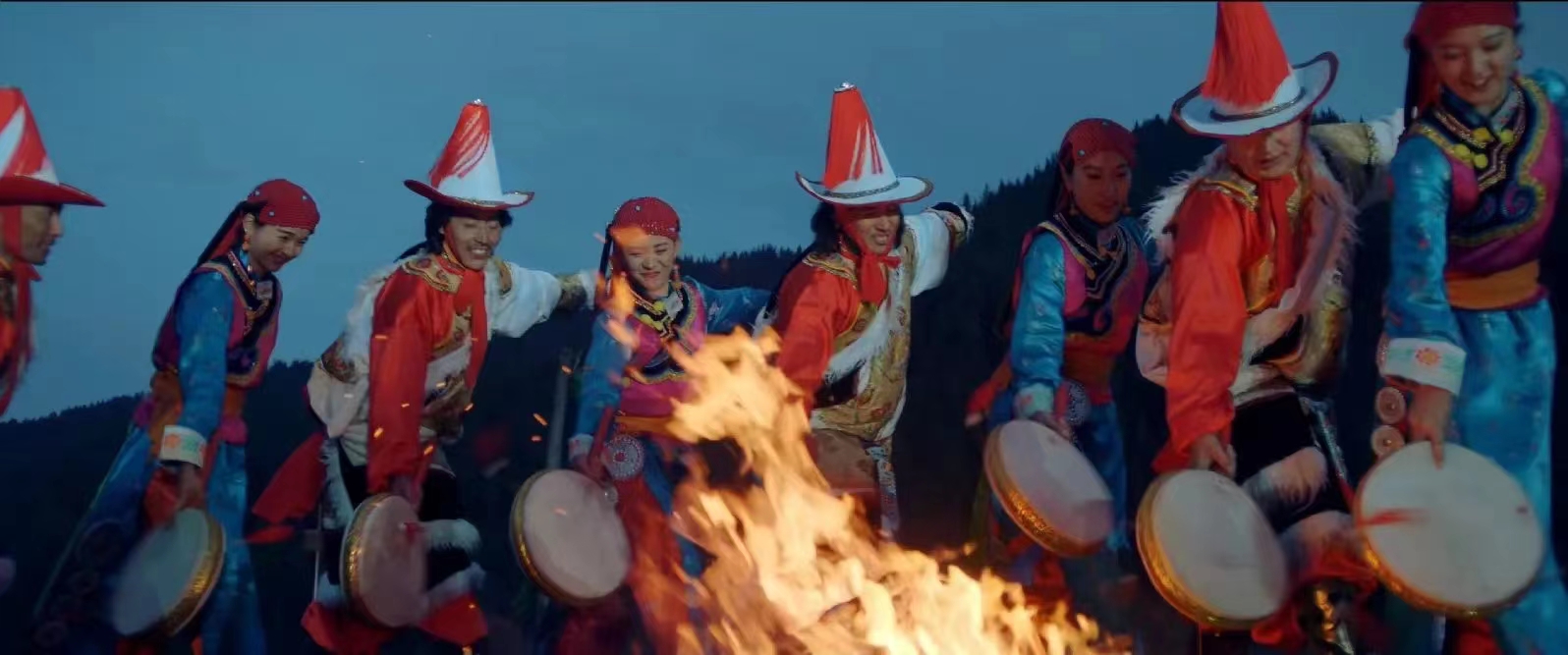 每当夜幕降临,卓尼的村寨便会被一种神秘而古老的气息所笼罩。这时,鼓声响起,如同远古的呼唤,将人们聚集在一起。几十位身着节日盛装的男子,手持巴东鼓,踏着鼓点,缓缓步入广场。他们的步伐坚定而有力,仿佛每一步都踏在了历史的长河之中。