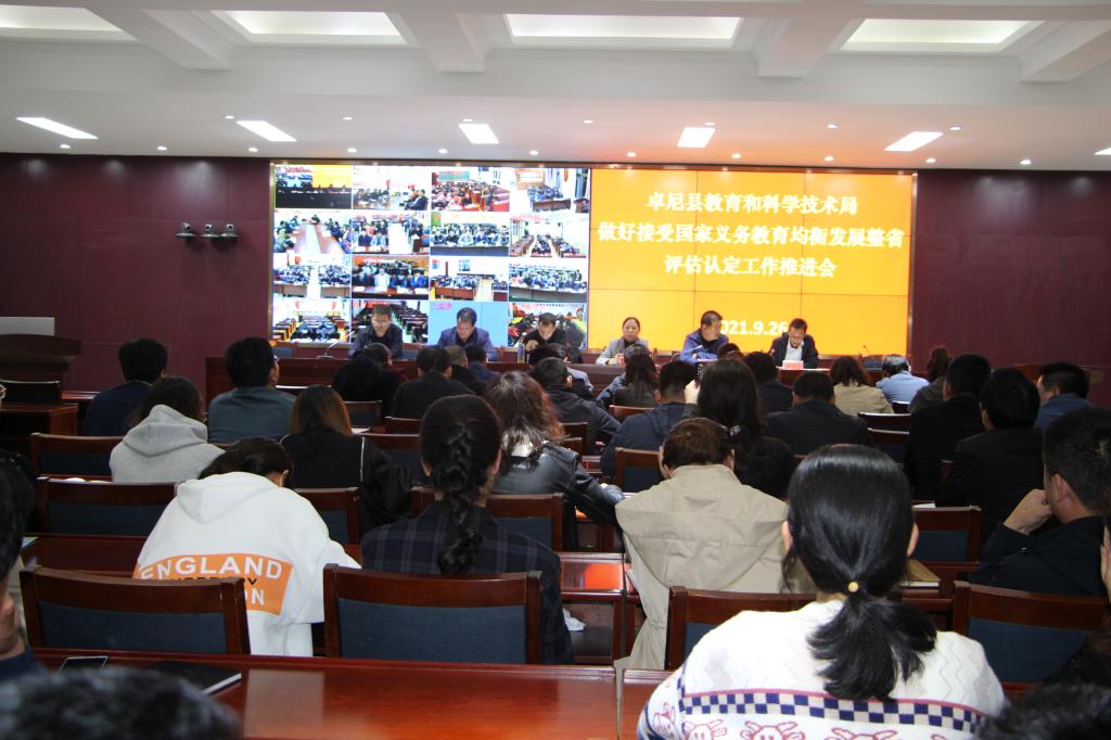 9月26日,卓尼县教科局以视频会议的形式召开了义务教育均衡发展整省评估认定工作推进会议,17个乡镇学区设立分会场,全县各学区(校)、幼儿园书记、校长、中层干部,局机关全体职工参加了会议。 会议总结梳理了推进迎接国家义务教育基本均衡发展整省评估认定工作进展情况,分析研判了存在的问题和不足,对迎评工作内容、指标和评估程序作了具体说明,局班子成员和相关科室负责人就各自分管领域重点工作进行了再安排、再部署。 会议强调,当前迎接义务教育均衡发展整省评估认定工作已进入倒计时,时间紧,任务重,标准高,责任大,局各科室和各学校必须各司其职,全力以赴抓好任务落实,确保各项指标均达到省定义务教育发展基本均衡县的标准要求,坚决不能影响整省通过国家评估认定大局。 会议要求,教科局各科室、各学校要坚持问题导向,抓住关键环节,尽快补齐短板弱项。一要紧盯时间节点,细化迎评措施。各学校要高度重视,立即进入迎检状态,积极主动作为,精心谋划准备,坚决克服麻痹大意、消极被动、侥幸心理,坚决把迎检工作摆上重要议事日程,做到责任到领导,任务到干部,进度到日期。二要对标对表自查,补齐短板弱项。局各相关股室、各学校要对照评估标准,加强对迎评工作细节的统筹和考虑,认真排查和梳理在学校标准化建设、校园文化建设、校舍和基础设施、规范办学、仪器装备使用、师资队伍建设、环境卫生整治、迎评氛围营造、档案建设与特色办学等方面存在的差距和不足,努力补齐短板,确保各项工作落到实处。三要明确职责任务,强化跟踪问效。要进一步健全监督检查、问责问效机制,严肃做好迎接整省评估认定工作的纪律要求,按照职责分工和目标要求,局各科室和各学校之间要做到无缝对接、主动汇报,加强沟通协调,及时了解国家评估认定工作的动态和要求,严肃工作纪律,对工作不力,影响迎评工作大局的,将严格按照有关规定进行问责问效。