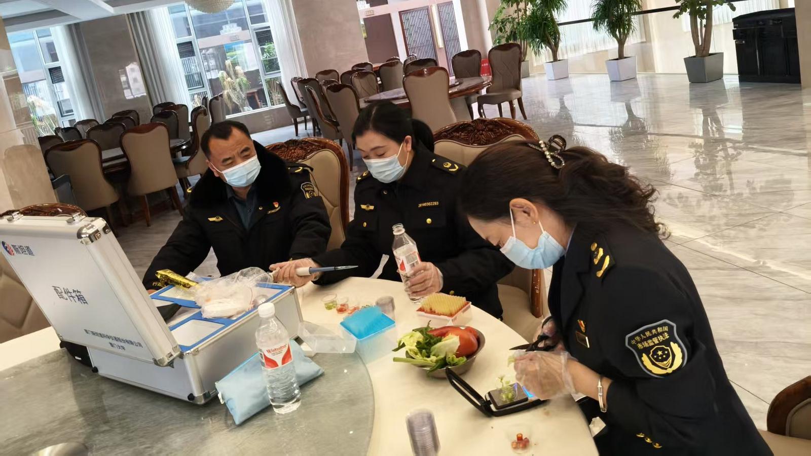 驻点值守强监管,全程护航无死角。会议期间,保障组严格落实“双人驻点、全程守护”机制,严把菜单审核、质量管控、消毒保洁、留样管理四道关口,规避高风险食材,全程跟踪食材加工流程,确保来源可溯、过程可控。同时,开展现场快检,重点筛查食材农药残留、餐具洁净度等指标,累计完成快检51批次,检测结果均合格,实现食品安全“零事故、零投诉”。