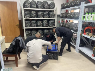 镇应急管理所、人武部对应急设备进行日常维护保养,重点针对发电机、风力灭火机、油锯等电器类救援设备逐一进行性能测试和故障排查。