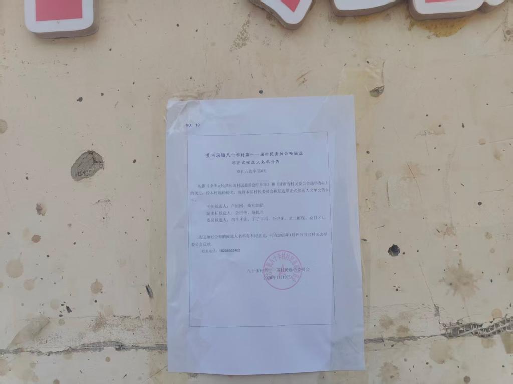 八十卡村第十一届村委员会换届选举正式候选人名单公告